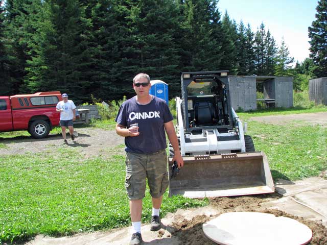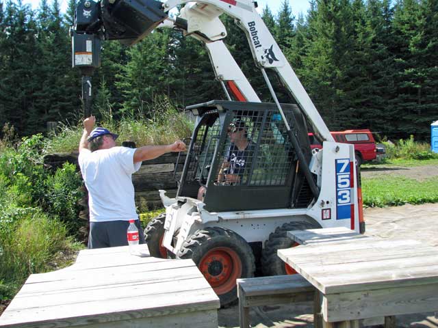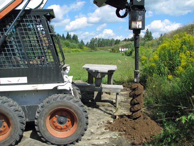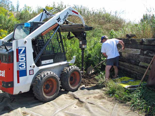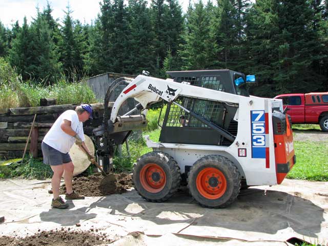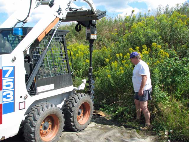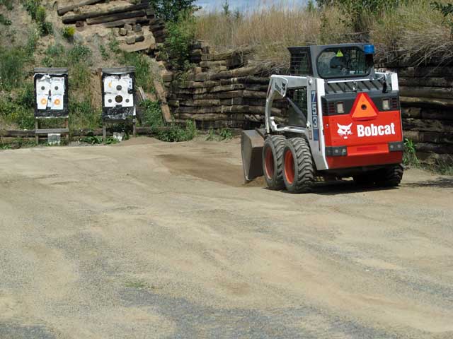 --- Robert drilled eight holes over 6 feet deep at the firing point for Range #2. He then changed accessories for a bucket to further level the gravel recently used to surface the pistol range (Range #1).
