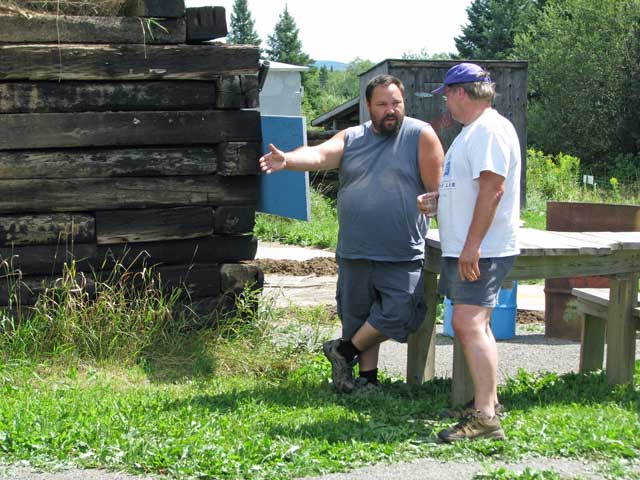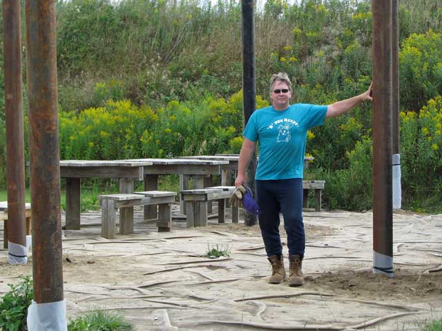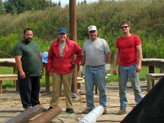 --- I wanted to build up a pad in front of the sign-in box as well, and we did so -- for brass and burning barrel as well. Wade was also going to replace the old barrel with a new one.
