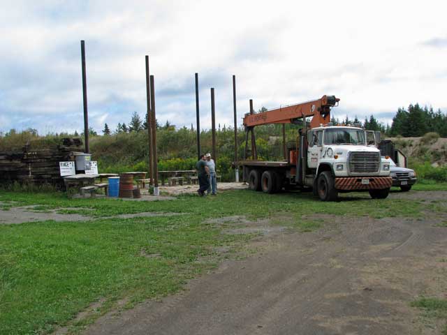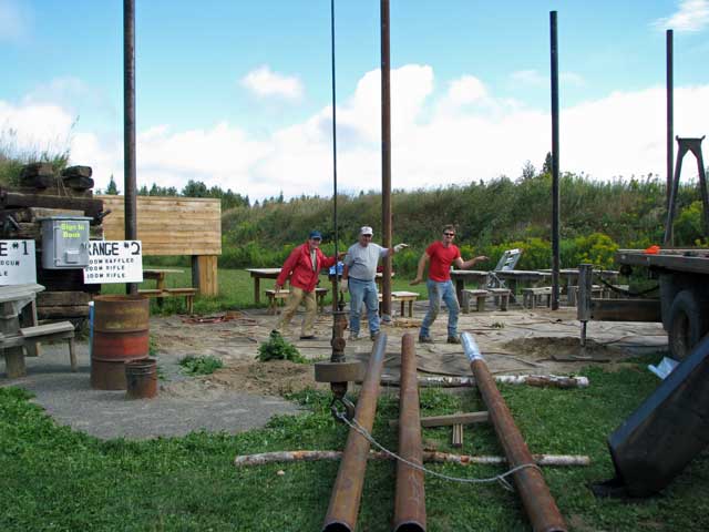 15 August -- Day Two. The night before, Terry D. had borrowed a massive boom truck and loaded it with 8 very heavy lengths of pipe up to 28 feet long. In the very early (for a Sunday) morning his son Jerry and Banacek convoyed with him to the range and were met there by Glenn H. and Wade W.
