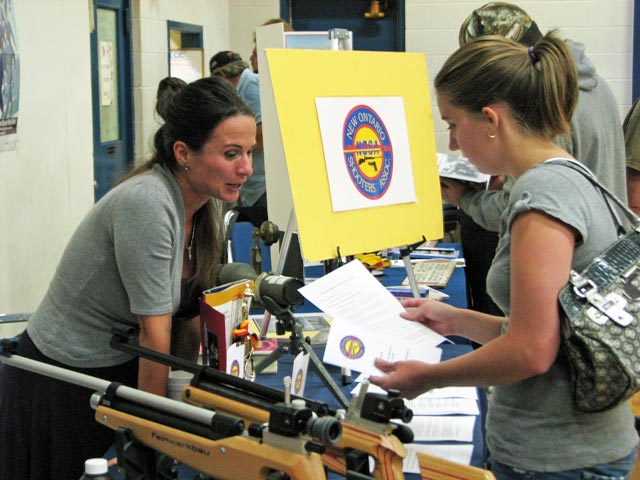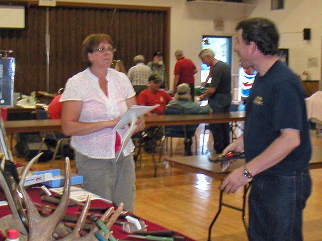 The Club hosted gun show in Murillo -- masterfully coordinated by Glenn H. -- was a great success this year with very strong attendance by the public. The unusually warm weather this year probably contributed to a record attendance. Many thanks to all the vendors who participated including several from out of town, and a big thank you to the large number of club members who volunteered to help out from the time of setup on Friday to the Sunday tear down. And particular thanks are owed to Bob M. and his valiant kitchen volunteers Warren W. and Don K. who kept us all very well fed and happy. Dana C. and Anna F. were interviewed by the Chronicle Journal for an article featuring the Club and Junior Shooters program.