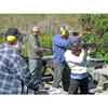 25 April. A most happy gang went to Nolalu to deliver materials and work (paint/dig/hammer/bolt/joke/sweat/laugh) alongside Terry D. who is our Properties Chairperson. Volunteers included: Dana C., Dan G., Don K., Ricky B., Trapper-John A., Wade W., and Warren W. The existing fence got straightened along with the old gate. A new second gate (same new club lock on both) was installed and lots of paint was used to make everything spiffy. Trapper-John certainly loves his red paint. The range baffle was stabilized with heavy wire guys for safety. Our particular thanks go to Hugh Paxton (Wire Rope Industries Ltd.) and George Hill (George Hill Supplies Ltd.) for providing sound advice and generously sharpening their pencils on materials needed.