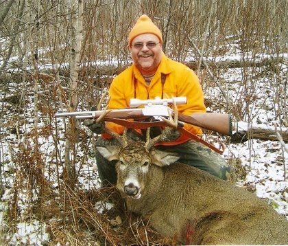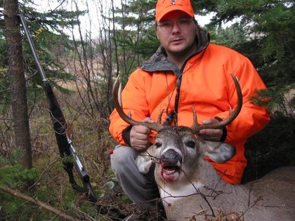 Scott S. provided the picture of son Timothy with his first ever moose during a fly-in hunt north of Armstrong; a splendid specimen -- 54 in., 40 in. paddles, .308 TC Icon.