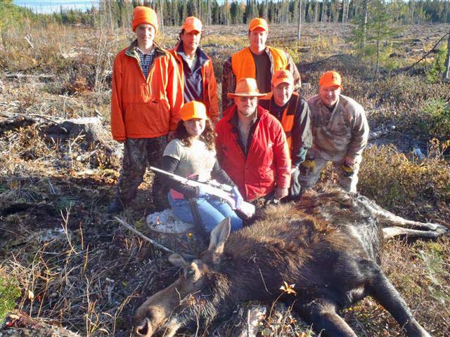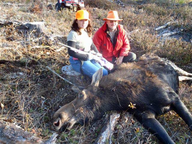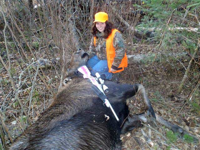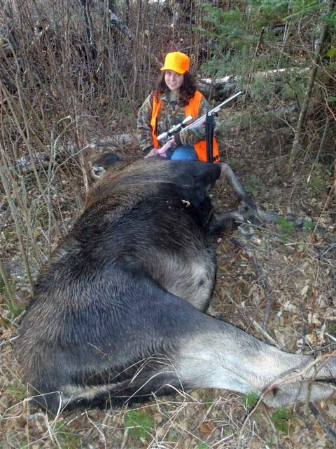 John-Bryan G. reports: "One of our Junior Shooters' Alumni shot her first moose this year. It was on October 11, 2010 at 9 a.m., a big cow at 155 yards. One shot, both lungs and the top of the heart. My daughter, Healey, has been shooting since she was 6 years old. Her first time with centrefire was at Nolalu when she was 9 years old, and today she has a passion for "big-bore" including her own short-mags, a 375 H&H and a 458 WM! Healey started with Junior Shooters about 10 years ago, and was in the club for several years. She has shot cowboy action and still shoots pistols and long-guns and probably shoots more centrefire in a year than most hunters do in a lifetime. She shot her first 2 deer when she was 15, and after moose hunting for 3 seasons, finally got her own moose! All have been 1 shot kills!"