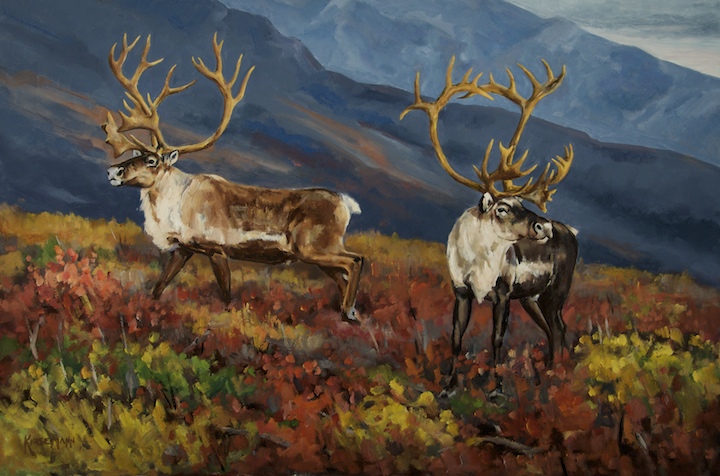 Stephen K. also had a photo-only hunt for caribou to gather references for a commissioned painting. First is one photo of a trophy bull caribou. And then see the final oil painting titled: "Nomads of Finlayson-Caribou". The herd home map is courtesy the Yukon Fish and Wildlife co-management website.