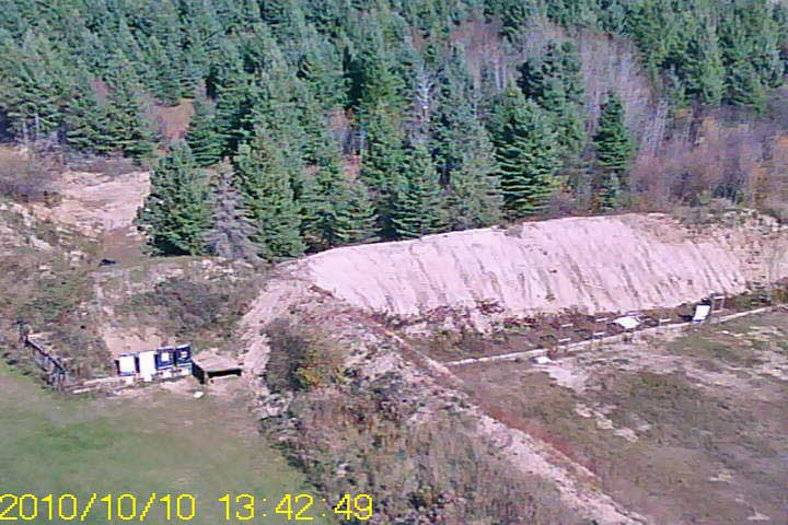 --- In the table below we start with Terry's three photos, of one 25 tonne truckload being dumped, Wayne and Wade using loader and shovel (yes, Terry put down the camera and wielded a shovel too), and the pistol range about 3/4 finished. Looking good.