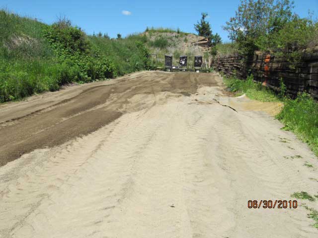 --- The finished pistol range is smoothed out to both sides all the way down to the end. Wade W. brought a packer and painstakingly went over the whole area. Wayne H. even assisted by doing a lot of raking, in addition to spreading most of the material with the loader.