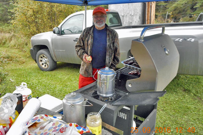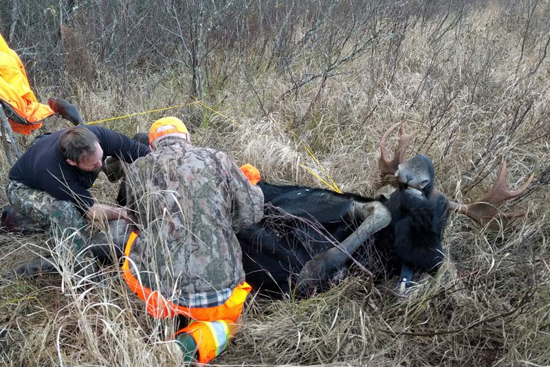 Bob M. is shown while starting to field dress his fine Bull Moose.
