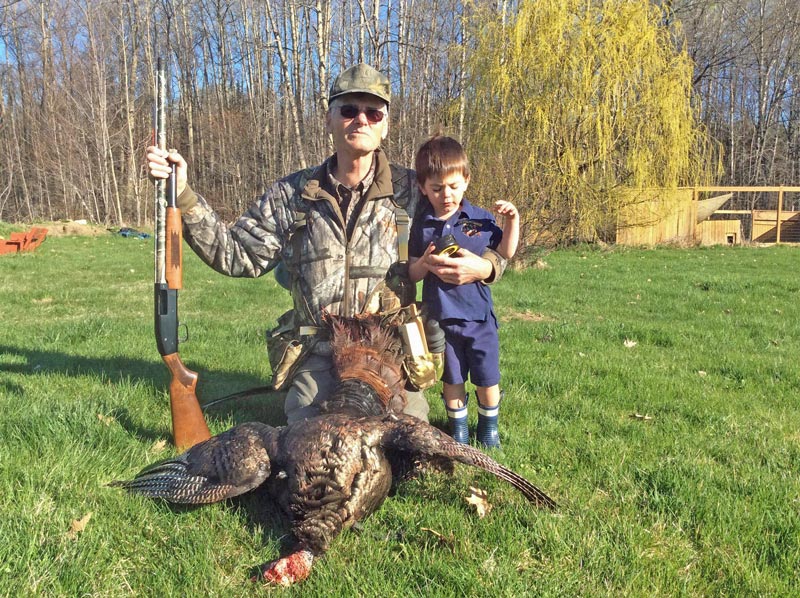 Don K. sent us this photo of a fine male Turkey, taken on his 2016 annual spring hunt for this wily bird. Don passed up an older Tom, to preserve the flock's breeding pool. His grandson, and future hunting partner, Declan is with Don on his daughter's land near Renfrew.