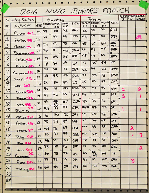 Report thanks to Dave L.: "The Christmas Shoot for 2016 was a great success for the Juniors with 14 Participants total. The Juniors would like to thank the Executive and Membership for their support and funding the Event as well as Gerry K. for providing refreshments for the after-shoot party. Special thanks to the volunteers George H., Dave L., and Don M. running and organizing the Event; Don M. taking pictures for the website; Jo-Anne L. and Sarah F. for scoring targets. Another special thanks to Jo-Anne L. and Kayla L. for baking and organizing prizes. Personally I would like to thank all the countless volunteers who have helped over the past year to make The Juniors Shooters a great learning experience for a sport we all seem to enjoy! To the NOSA Executives, Members and Families -- to everyone Merry Christmas and Happy New Year! Looking forward to starting up again with Juniors on January 11, 2017 with a BANG."