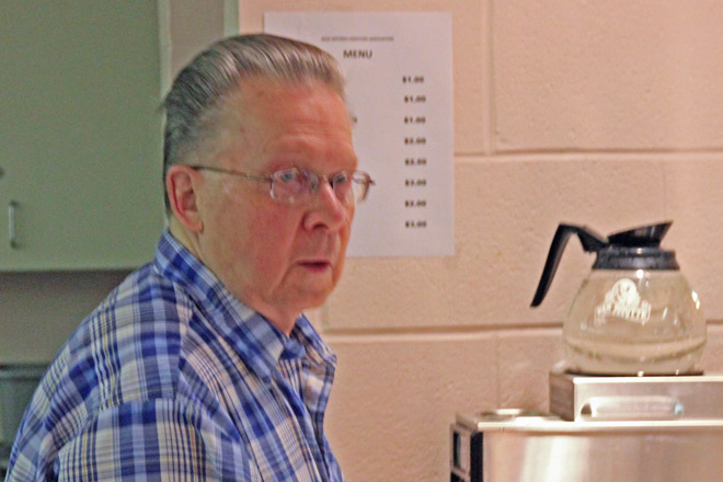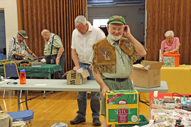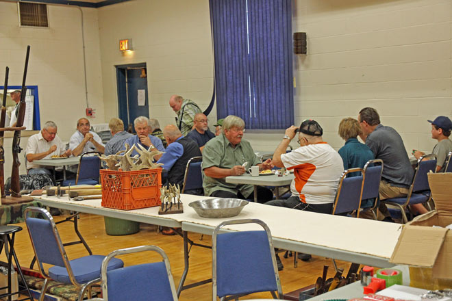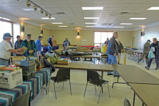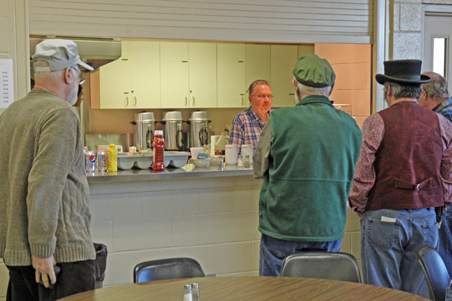 On Friday afternoon we gathered to bring out the folding tables and chairs, arrange them, and then help the exhibitors haul in their weighty fare. George H. provided some extra folding tables. Saturday and Sunday mornings started with Bob's crew and their hearty and most welcome breakfasts. Saturday morning found a large rush from the public and 560 adults visited that day, breaking our record. Sunday morning's crowd was lighter (as often happens because of the time change) but eventually 208 adults came in. A very good weekend's attendance.
