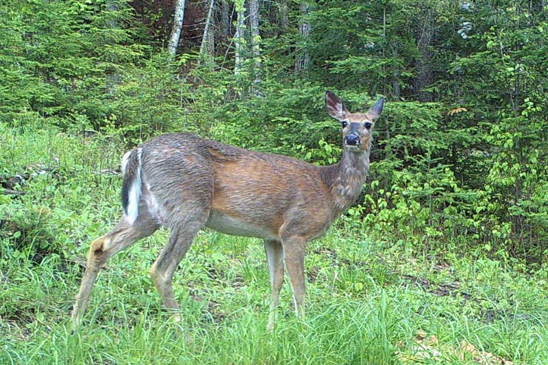 On 24 August Don M. took this photo of a Whitetail Deer doe and her two fawns in his yard.
