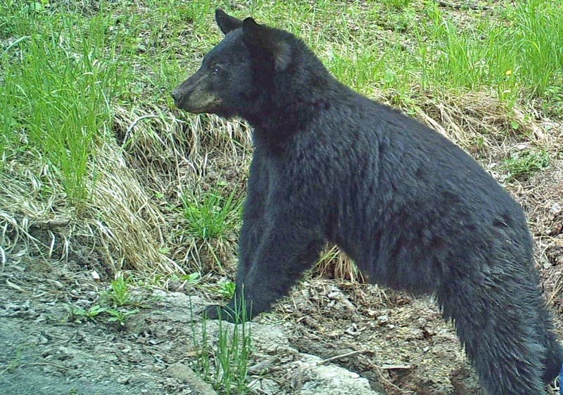 Wayne Sm. always records the wildlife frequenting his mountain home. Here we have a young Black Bear Cub and at another time a Whitetail Deer that is transitioning to its summer coat. A curious Raven circles overhead.