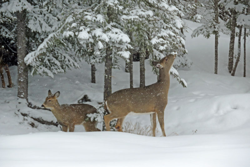 On 5 March these two Whitetail Deer, daughter and mother, again visited my yard to nibble on trees and bushes and moss, and they looked pretty healthy now that most of the winter is past.