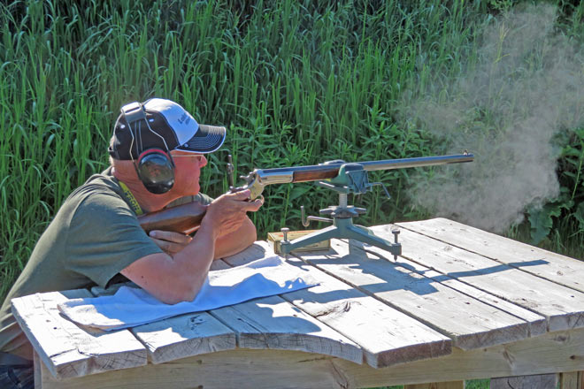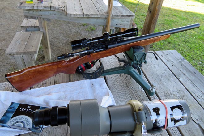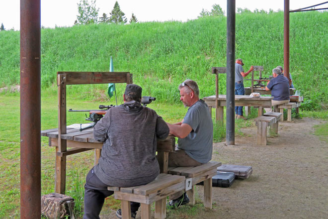 On Range 1 for rifles: .22 RF Target and .22 RF Bingo. Targets were attached to the 50 yard distant target frames, and shooting was done rested on the benches. (Resting of the rifle could be done by using elbows, or using a bipod, or any variety of bench rest device.)
