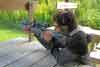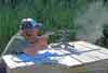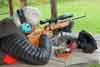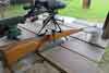 --- We have a photo of this shoot's first place winner George H. taken during his pre-shoot meditation. Congratulations to George, and to Bob J. who came in second. We also have a photo of the CZ full stock rifle that Bob J. used.