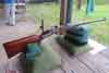 Not a Mug Shoot -- 20 August. Gerry K. organized what was originally to be a rimfire mug shoot at Nolalu, to neatly eradicate all the excess coffee mugs that had built up at GMK. Turned out that such could possibly become a richocet hazard; so the shoot was changed to frangible orange clay pigeons in front of the backstop at 100 metres. Our thanks to Gerry for running this shoot and providing corn treats to the many contestants and spectators. This shoot with any rimfire rifle was strictly for fun. All contestants chose to shoot from the bench using just elbows for support.