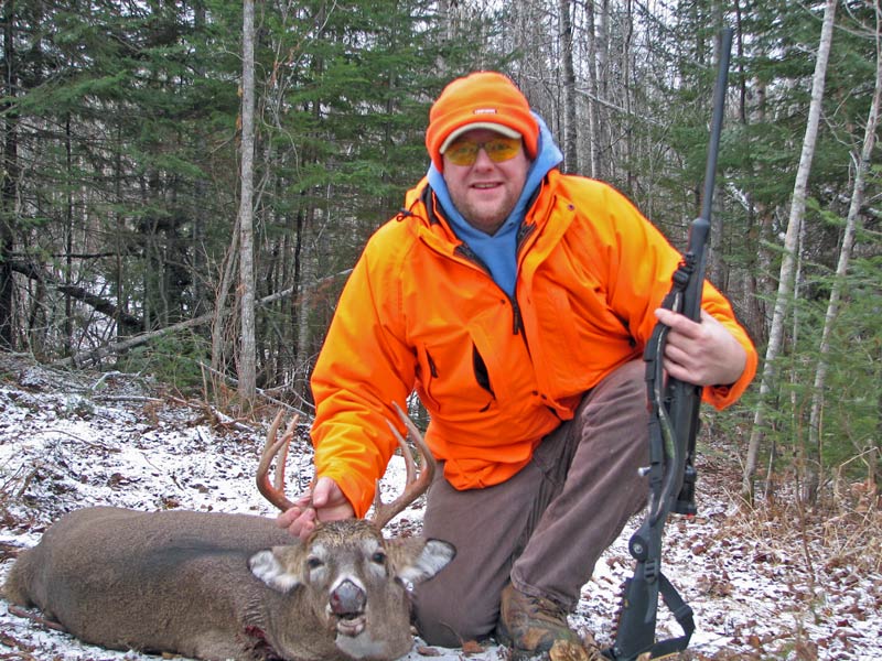 ![]() Memorable 2011 Deer Hunt in Northwestern OntarioMarch 2012 -- Chris C.According to my long time friends and hunting partners from Sault Ste Marie and London, this season was FANTASTIC! The calf moose was harvested from the Adrian Lake area on the first day of our hunt. The calf was shot by my friend from London who until that day had never seen a moose, let alone had a chance to hunt one. The rest of our hunt was a great way to break in my new Thompson Center Venture .300 Win Mag, with all 5 deer shot with it in a 6-day time period. My final 8-point buck came as a surprise as I was actually out mid morning to take down my tree stand. I climbed up to take a few pictures for my 2011 Hunting Album. While sitting I threw out a few soft doe bleats and closed my eyes, enjoying the tranquility of the moment. Not more than 15 minutes later I heard branches breaking in the distance and was greeted by a healthy 8-pointer heading my way. I was able to range him at 185 yards out. I picked up my rifle and managed to put the cross hairs on him with little effort. (Thank you Bushnell Elite.) Patience paid off for me this time. A gentle squeeze of the trigger was all that was needed as I toppled him with a perfect heart/lung shot 65 yards from my tree stand. I guess all the days spent on the range paid off this year. A few celebratory minutes later, and many thanks to the deer Gods, I climbed down, tagged and field dressed this fine animal. In all my excitement I didn't take the scenery pics I wanted nor did I take down my stand. That was left for the next day as I climbed back up with my camera and cup of Tim's to put an end to another great season of hunting... Click on the individual images here to see a larger view.