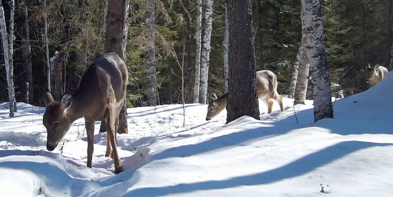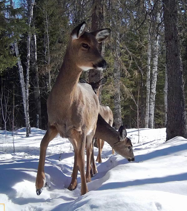 In March, Wayne's superb trail camera observed some Whitetail Deer in daylight and then a Red Fox at night.